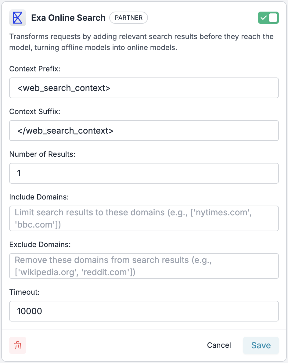 Step 1: Enable Exa Plugin in Portkey